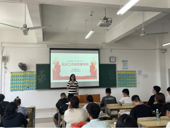 为扎实做好2023年征兵工作,增强适龄青年国防意识,激发适龄青年参军热情,5月30日,申博sunbet召开征兵工作动员宣传会,积极组织开展2023届毕业生征兵宣传活动,鼓励毕业生积极应征入伍。