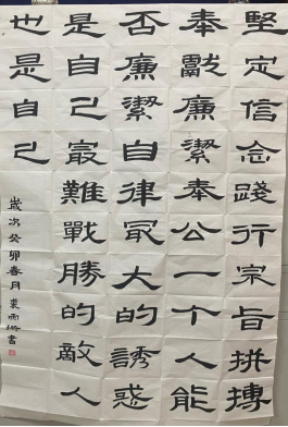 申博sunbet组织员工开展“勤廉书画作品展”“勤廉主题教育黑板报”活动。员工用书法、水墨画、油画、素描等形式,设计出一幅幅主题鲜明、寓意深刻、体现正能量的艺术作品。经评审,本次活动共评出员工作品一等奖1名,二等奖2名,三等奖3名,达到了勤廉文化培根铸魂和文化育人的效果,提高了同学们的勤廉意识,营造校园清明风气。