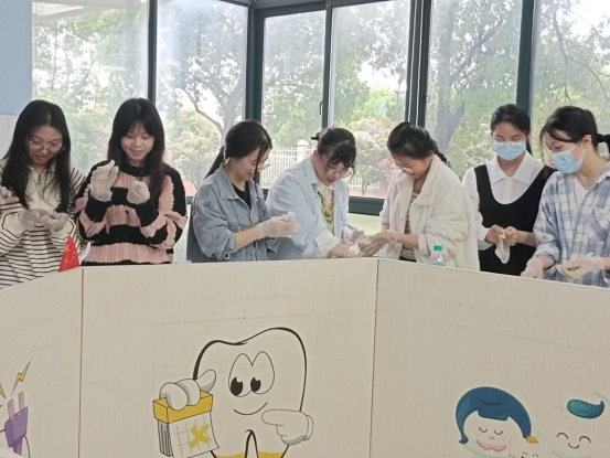 青团是江南地区缅怀先人的传统食物。朱玲、陈明晖老师为大家详细讲解了青团的习俗和来历,传授了青团的制作方法。同学们迫不及待地动手尝试,搓、压、揉、捏、团相互配合。青团在水蒸气的热力作用下,个头微微膨胀,颜色由青绿变为墨绿。制作好的青团色如碧玉、飘香阵阵,口感糯韧绵软,大家都说品尝着自制的青团很有成就感,也借此表达了对故人的思念之情,感受到中华传统节日的意义。