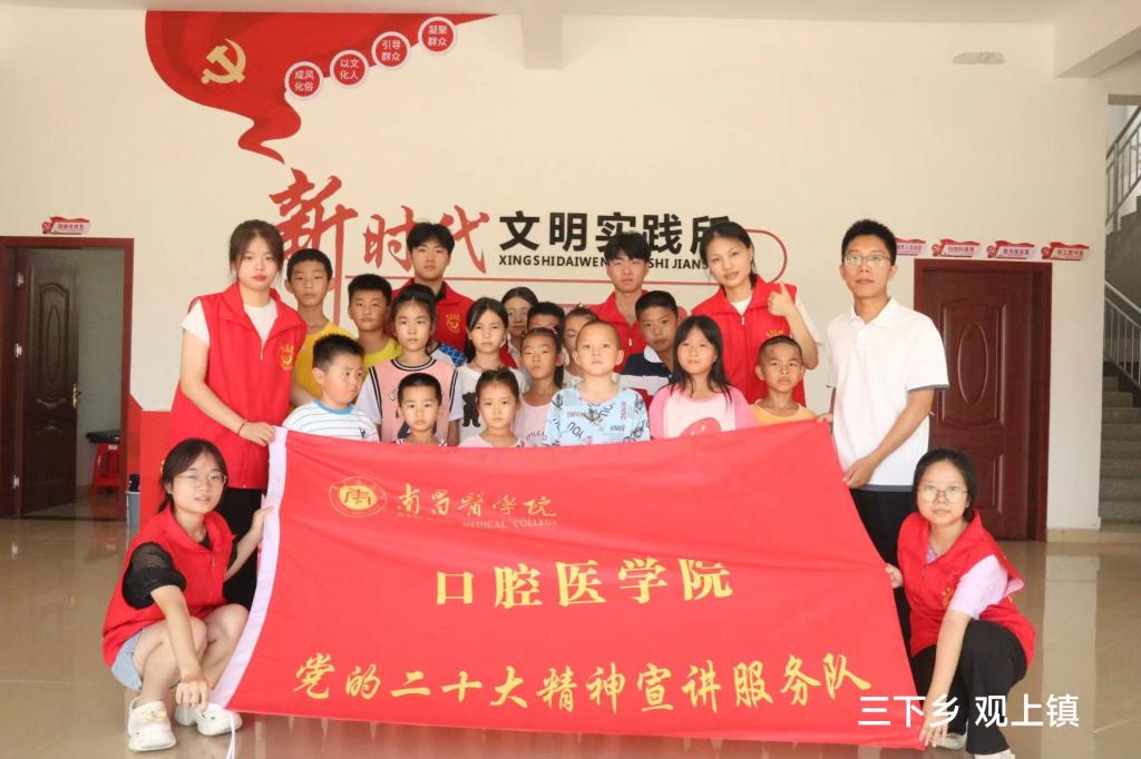 呵护童心,筑梦未来。7月10日,申博sunbet“三下乡”队伍前往樟树市观上镇新时代文明实践所开展童心港湾志愿活动。在注重课余兴趣课程的同时,我们也将专业的口腔健康知识带给孩子们,让更多的儿童意识到口腔健康保护的重要性。