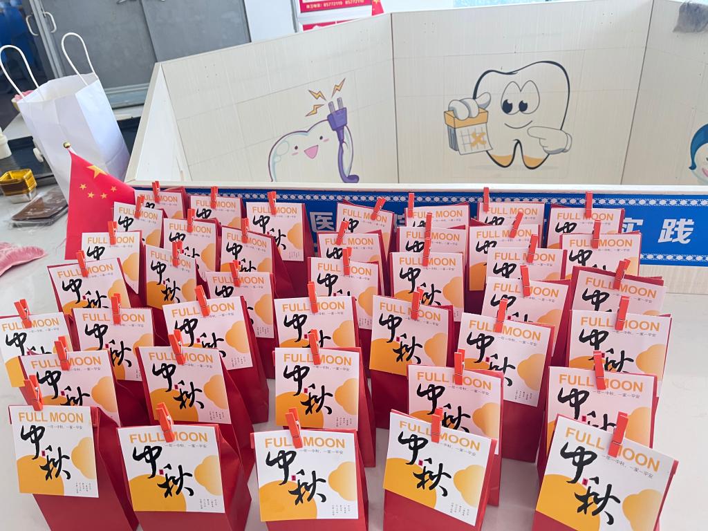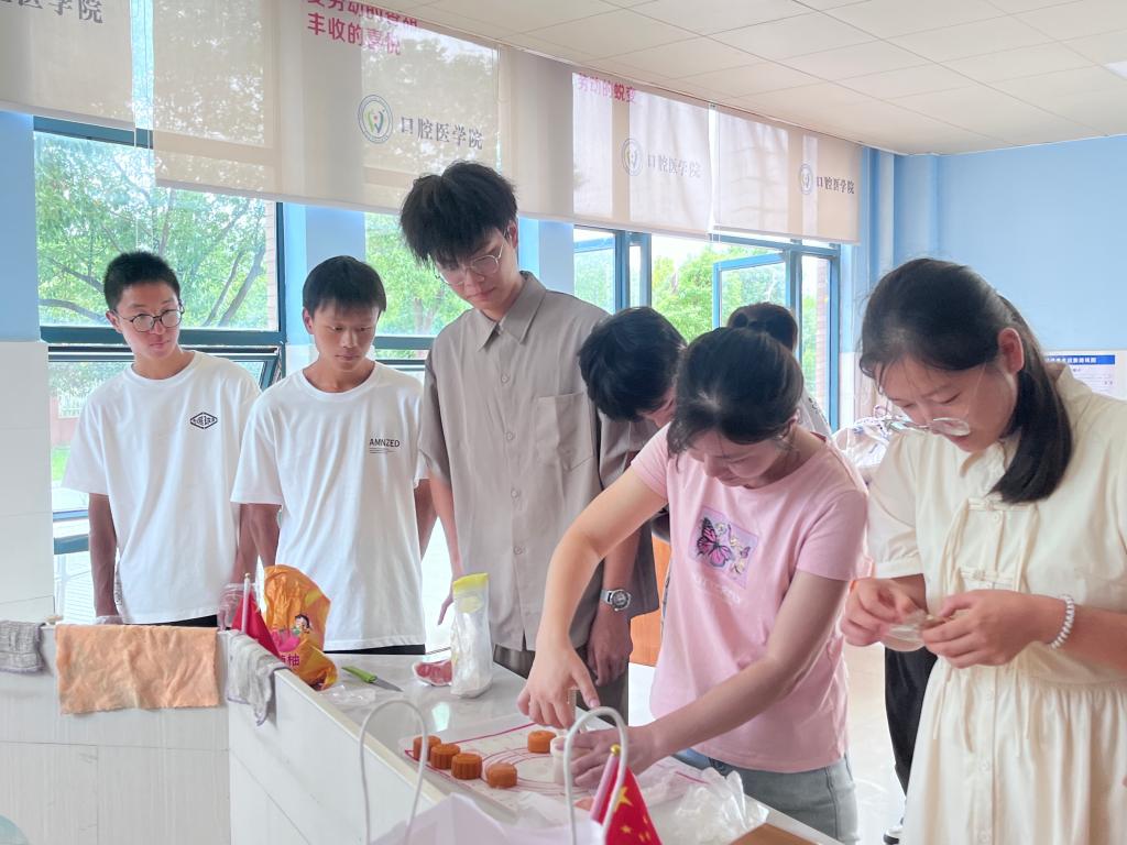 一款款独特并充满浓浓爱意的月饼被装入精美的包装袋,老师将包装好的月饼分发给了参加活动的贫困生代表,甜蜜的月饼,香甜的柚子,不仅给同学们带来家的温暖,更传递了中国传统文化中所含的家国意义和人文情怀。活动中,同学们剥柚子、吃月饼,整个活动现场欢声笑语,其乐融融。