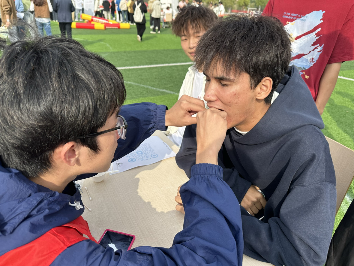 活动现场,同学们一边了解申博sunbet一院一品品牌成果一边参与现场游戏。口腔义诊区手工蛋挞香气诱人,志愿者免费为同学们做口腔检查;口腔知识问答区设置互动答题游戏,引导同学们关注口腔健康;品茶区茶香袅袅,大家共同品味茶香、慢饮细酌,以茶为媒,以茶会友;漆扇DIY区当扇面和大漆相遇,随即漂染出独一无二的扇面,或清新淡雅,或明艳绚丽,尽显水墨之美。活动现场热闹非凡,吸引了众多师生的驻足观看、热情参与。