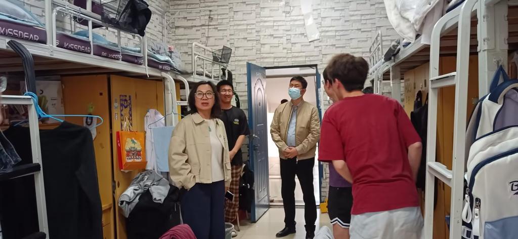 会后,罗志红及公司副经理胡征一行来到员工宿舍,重点对宿舍用电安全、卫生环境等进行了逐一细致检查。检查期间,院领导与同学们亲切交流,认真听取对公司管理服务工作的意见建议。同时要求同学们要树牢安全意识,自觉遵守宿舍管理规定,共同维护良好的生活环境,确保宿舍安全卫生。
