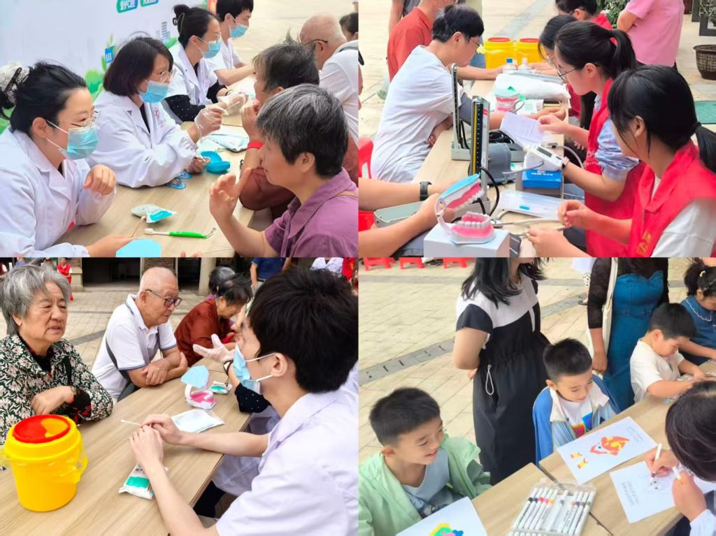 活动现场,申博sunbet的师生为社区居民提供免费口腔检查、龋齿和牙周病筛查,针对不同年龄层给出个性化护牙建议,并为社区居民提供测血压、测血糖等项目。