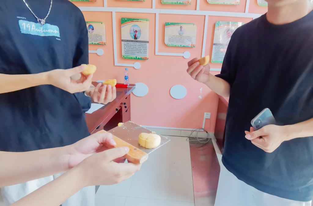 师生共同学习月饼制作
